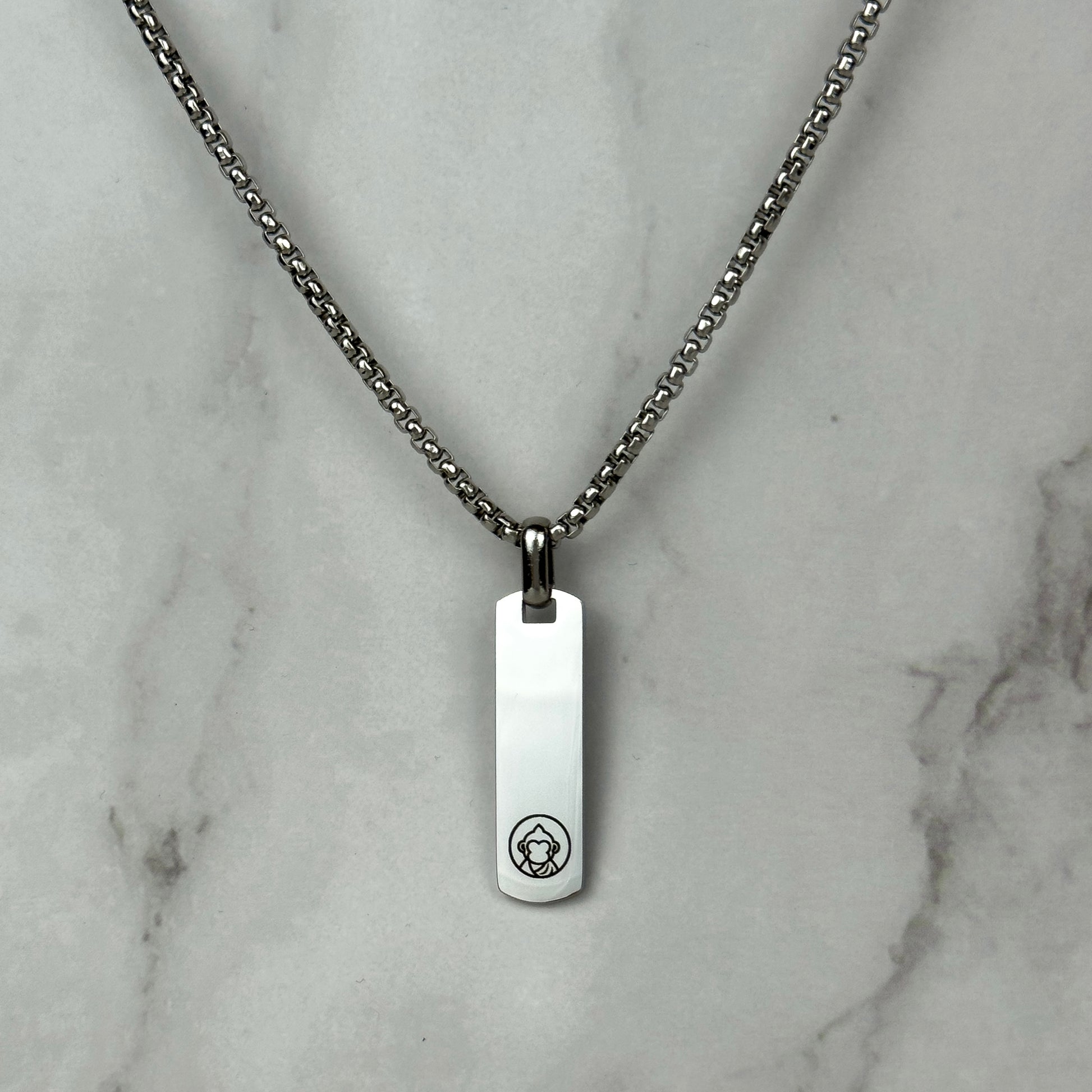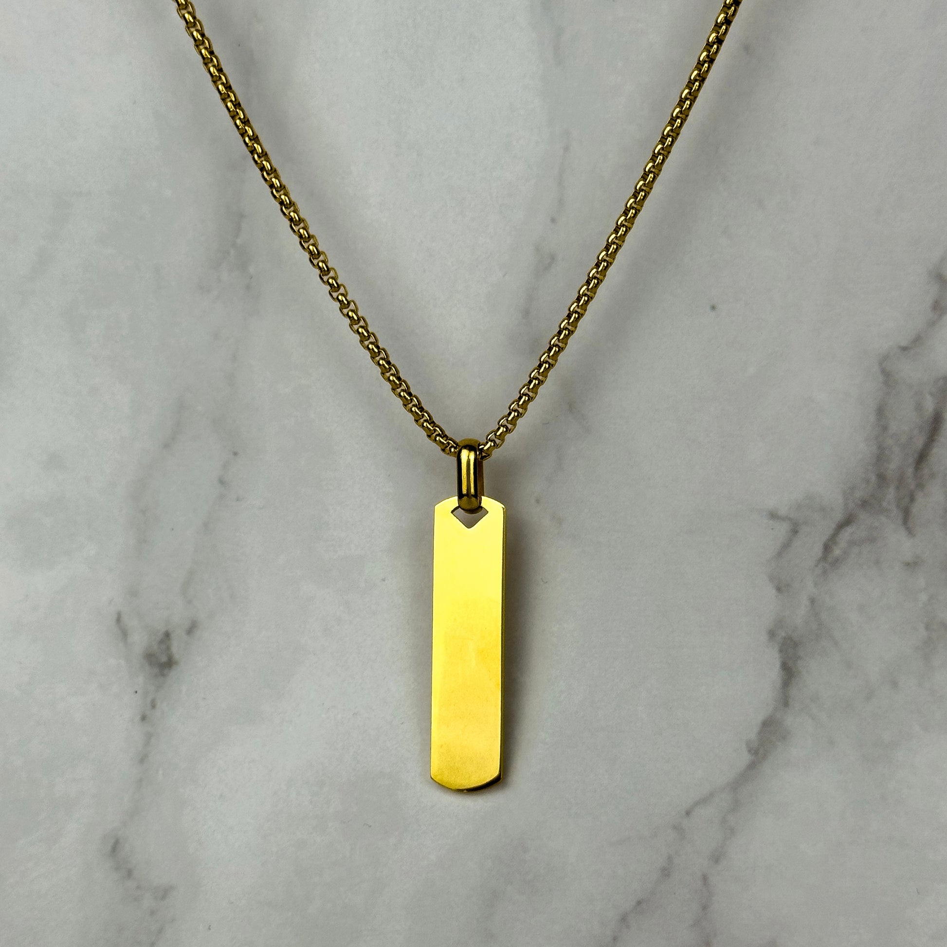 De hanger is personaliseerbaar aan de voorkant. Kies een datum, coördinaten, initialen of een woord dat voor jou kracht heeft. De langwerpige vorm maakt deze ketting perfect voor subtiele, verticale gravures.